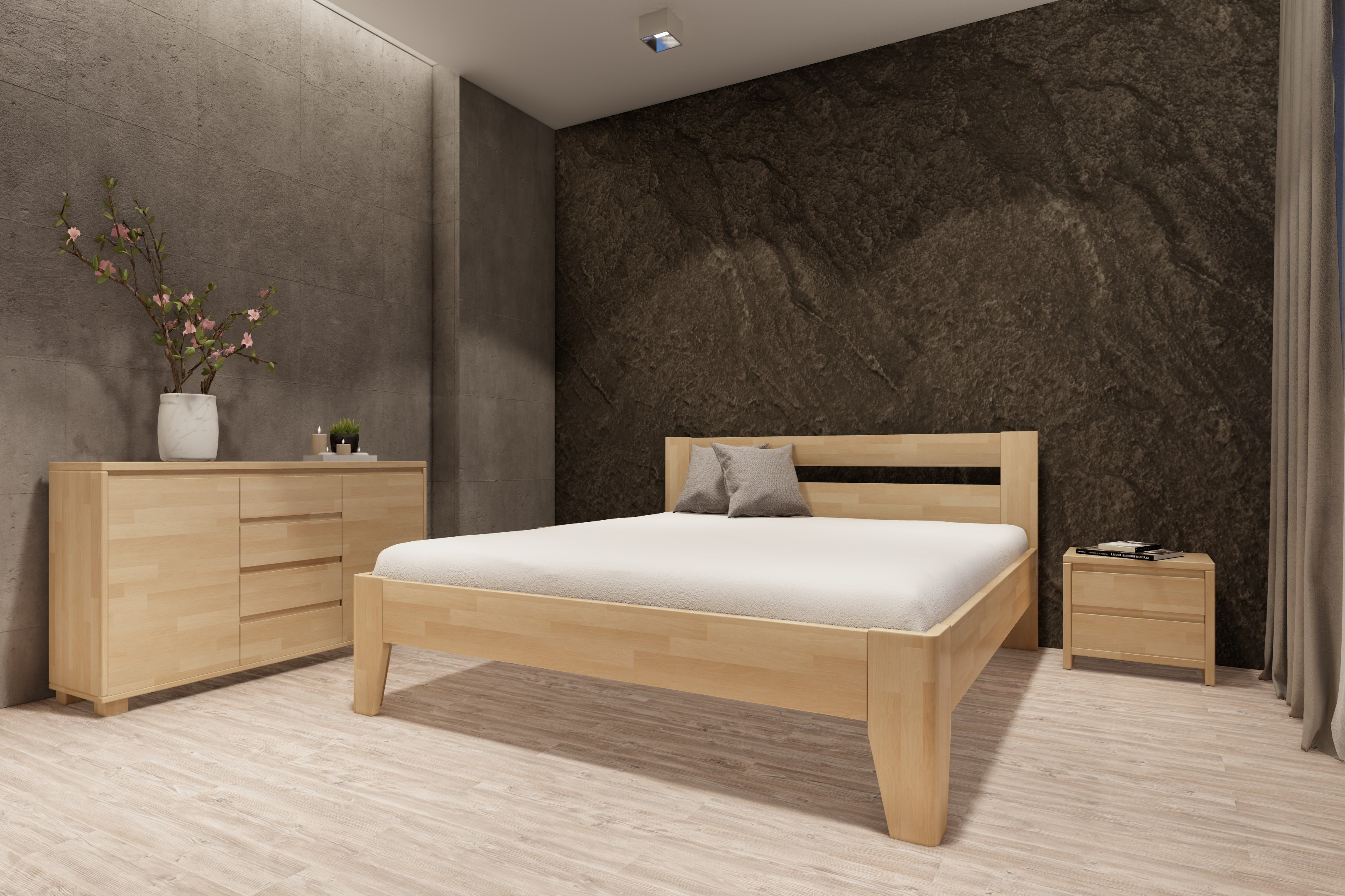 Posteľ AGNES s vysokou kvalitou spracovania zaisťuje štandard, ktorý uspokojí aj náročného zákazníka. Posteľ je vyrobená z masívneho buka v hrúbke 30 mm.