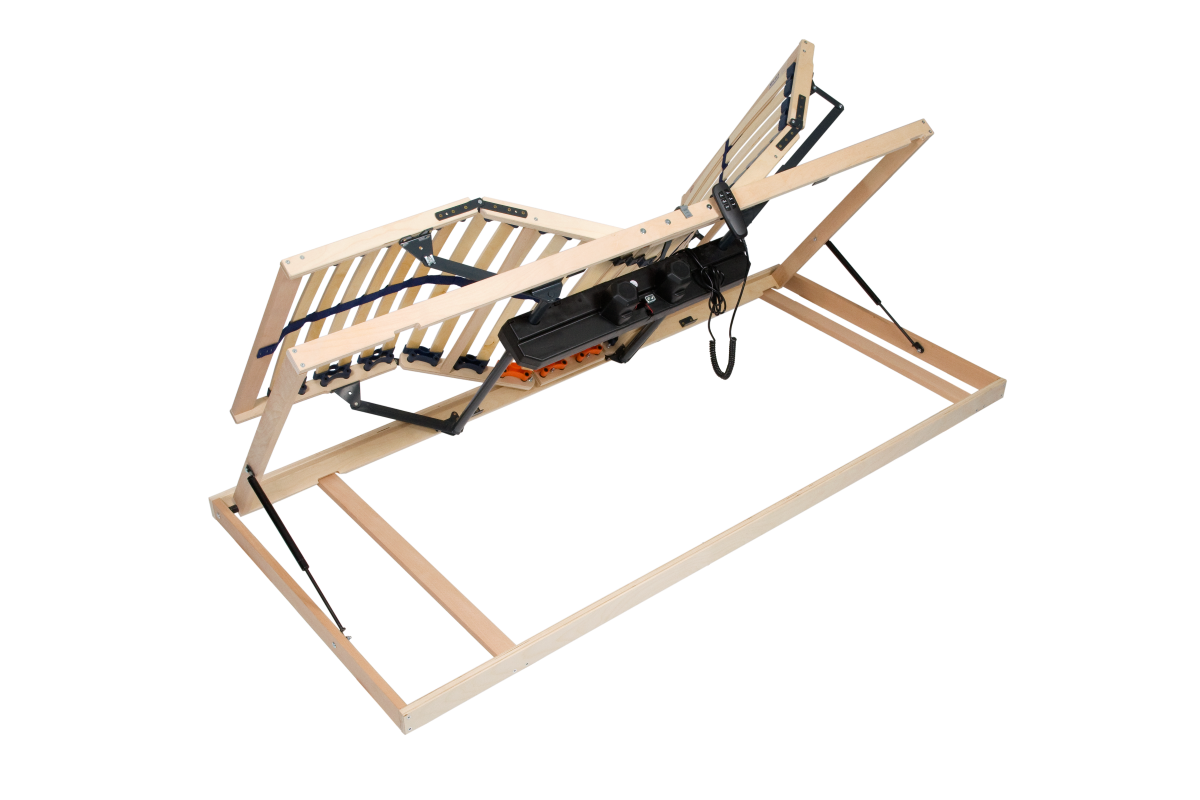 • univerzálny elektricky polohovateľný výklopný rošt, ktorý zabezpečuje elegantný a jednoduchý prístup do úložného priestoru po celej jeho dĺžke • pohodlné polohovanie hlavovej aj nožnej časti do celej škály kombinácií rôznych polôh, ktoré uľahčujú regeneráciu zdravotne znevýhodneným osobám • vhodný pre latexové a penové matrace