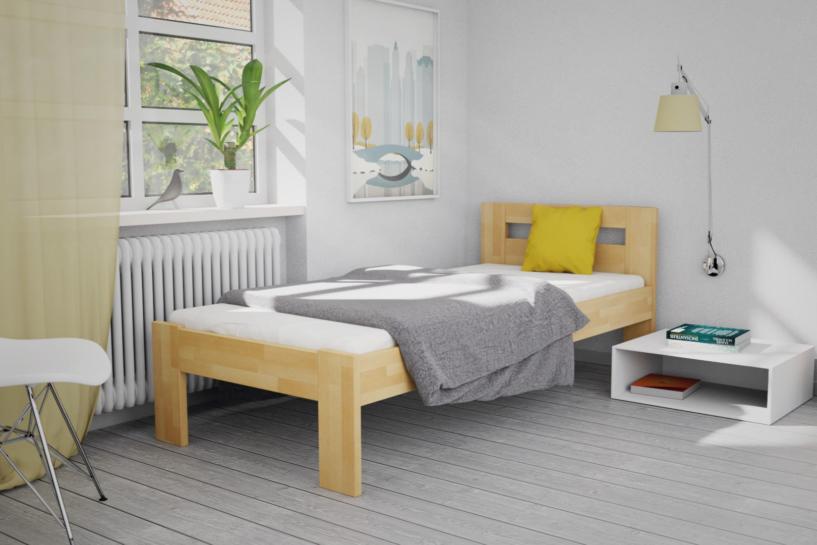 Študentská posteľ JUNIOR vyrobená z masívneho bukového dreva v hrúbke 30 mm.