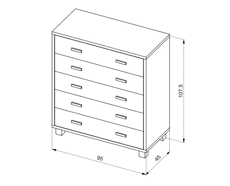 Komoda SK-5Z ( Stredná Komoda - 5 x Zásuvka ) vyrobená z masívneho bukového dreva.