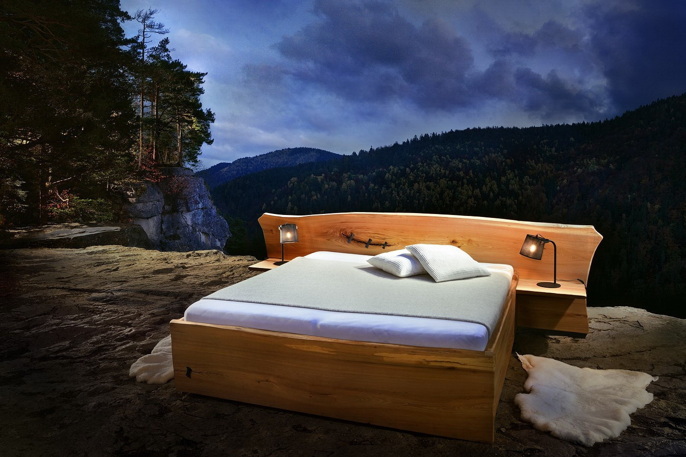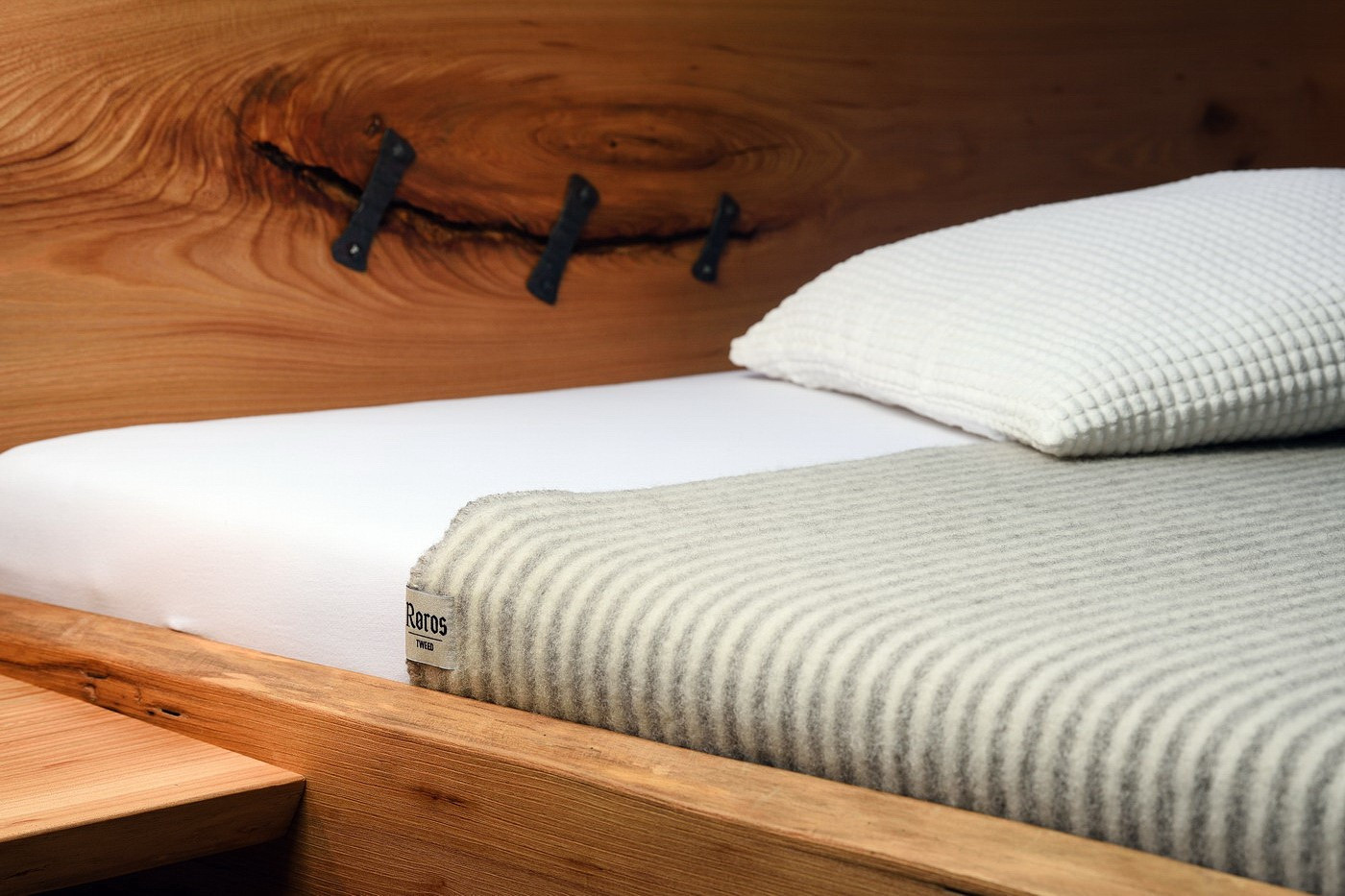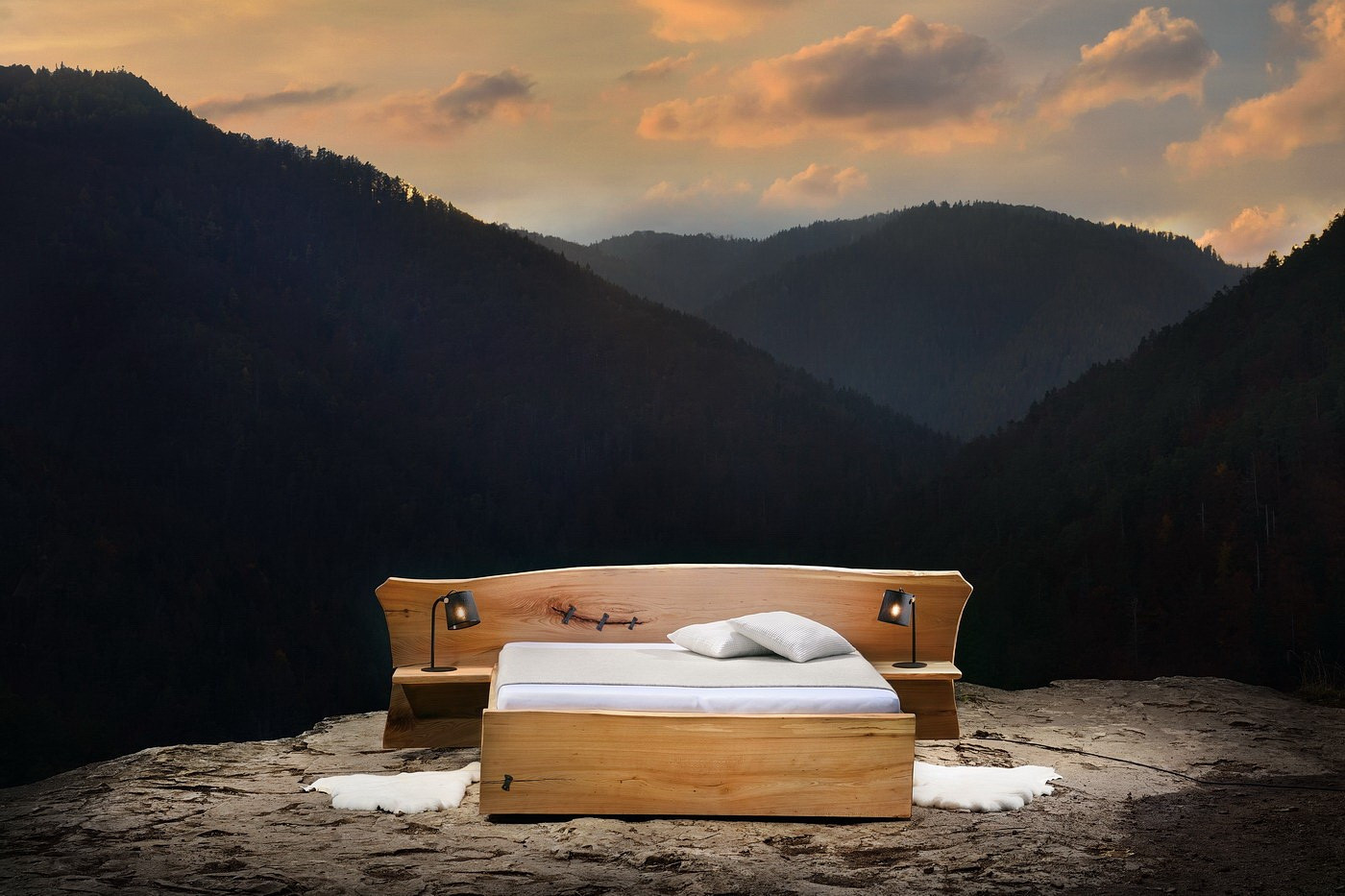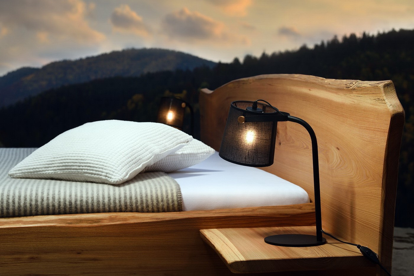 Manželská posteľ ELBA vyniká jedinenčým dizajnom z brestového kartáčového dreva a veľkorysým úložným priestorom. Posteľ z masívu s hrúbkou 40 mm dodávame aj s nočnými stolíkmi a roštami.