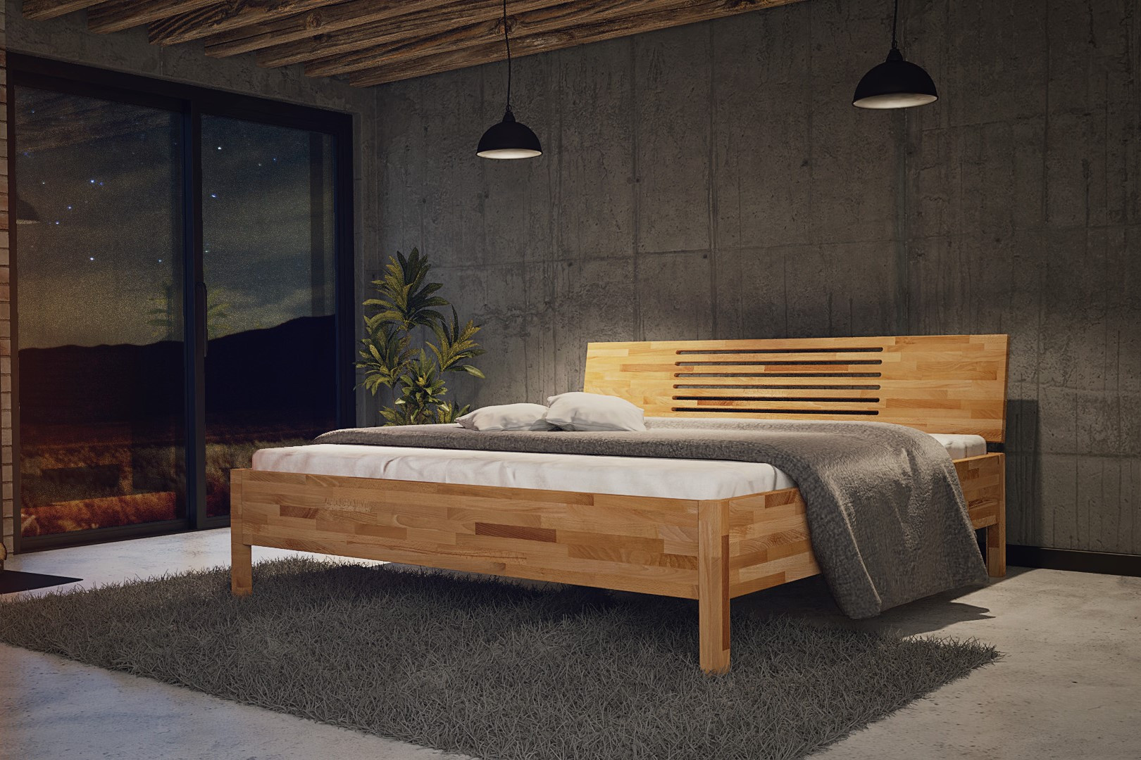 Masívna posteľ CALVINA vyrobená z jadrového buka s osobitou štruktúrou dreva. Múdra investícia pre vaše pohodlie a spokojnosť.