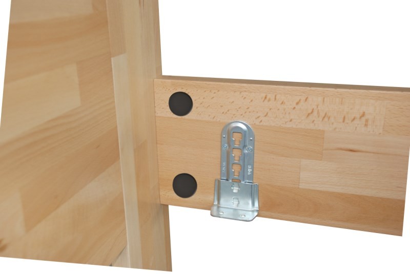 Posteľ UNI s vysokou kvalitou spracovania zaisťuje štandard, ktorý uspokojí aj náročného zákazníka. Posteľ je vyrobená z masívneho buku v hrúbke 30 mm.