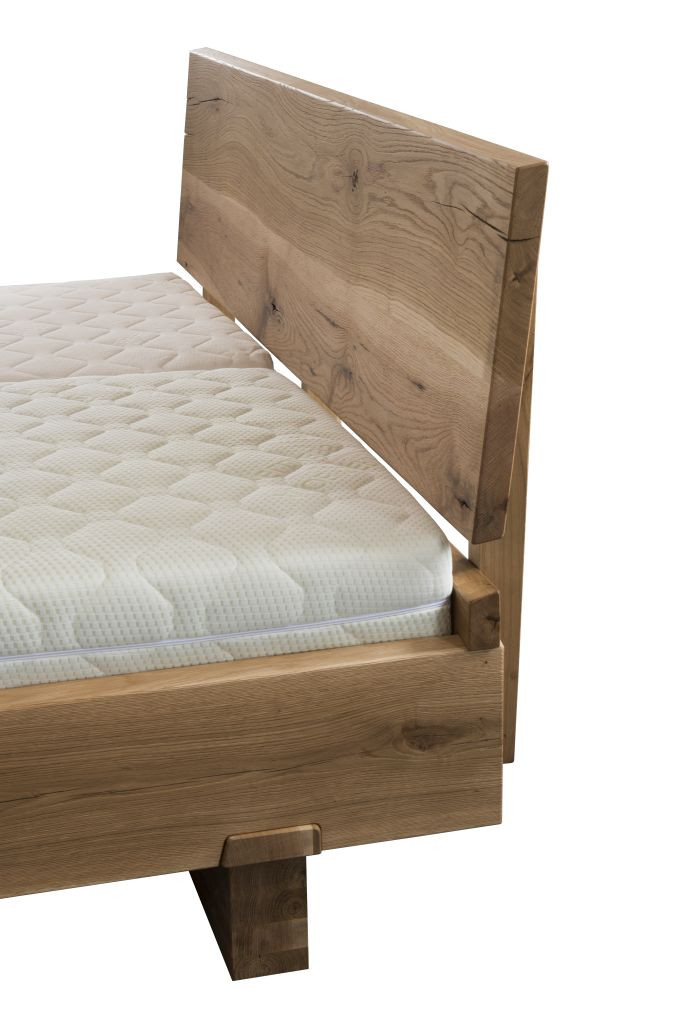 Manželská posteľ ARIANNA s opticky sa vznášajúcim efektom z dubového dreva v rustikálnom štýle. Posteľ z masívu o hrúbke 40 mm ponúkame v rozmeroch 160x200 cm alebo 180x200 cm.