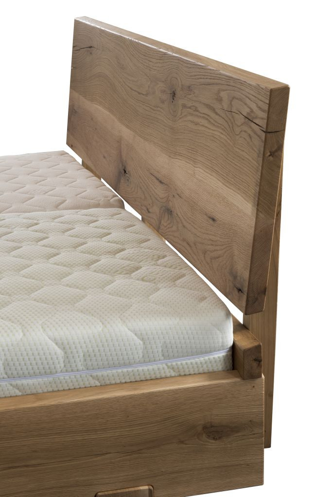 DUB RUSTIK sa vyznačuje vybratými vláknami pre dosiahnutie rustikálneho vzhľadu materiálu - výrazná až hrubá textúra dreva, malé aj veľké vrastené hrče, otvorené praskliny. Tento materiál je vhodný pre výrobu exkluzívneho nábytku a interiérov, kde je požadovaný rustikálny vzhľad a neopakovateľnosť kresby. Každá doska dubovej dvojlôžkovej postele je nenapodobiteľný unikát. Hrúbka dubového masívu je 40 mm. Naturálny povrch bez umelého lesku, jemnosť a odolnosť dodá drevenej posteli olejovosková povrchová úprava. Jedinečnú posteľ z masívu ARIANNA ponúkame len v limitovanom počte.