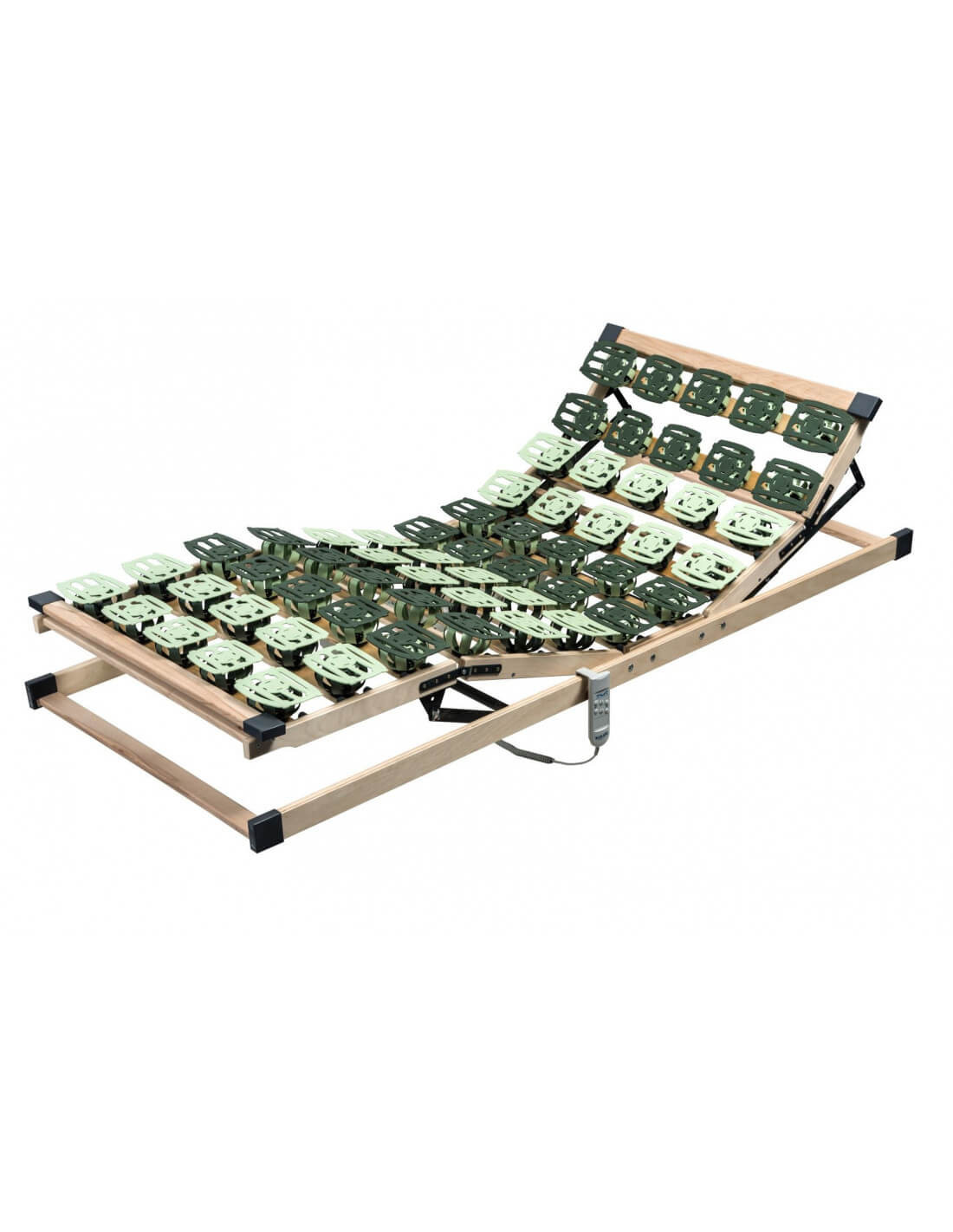 Exkluzívny elektrický lamelový rošt LUX MOBIL je polohovateľný segmentový rošt s motorovým polohovaním časti pod hlavou a časti pod nohami so 60 aktívnymi segmentmi rôznej tvrdosti rozložených pre optimálnu polohu pri spaní do 6 zón tvrdosti. Segmentový rošt je dostatočne pevný, aby sa na ňom matrac neprehýbal pričom zaručuje dokonale kopírovanie krivky tela, dokáže dokonale rozložiť váhu a individuálne reagovať na zaťaženie v každom bode povrchu matraca. Prídavná lišta na okrajoch roštu rovnomerne podopiera matrac aj na okrajoch pri nohách a v hornej časti matraca. Zamedzuje deformácii okrajov matraca a predlžuje jeho životnosť. Drevený rám roštu je opatrený fóliou, a tak do roštu nepreniká vlhkosť a nevytvára sa prostredie pre výskyt baktérií a plesní. Segmentový rošt zaručuje veľmi dobrú priedušnosť. Polohovateľný posteľný rošt ponúka nosnosť až 130 kg a je vhodný pre kvalitné latexové a penové matrace. Výška roštu je 11 cm.