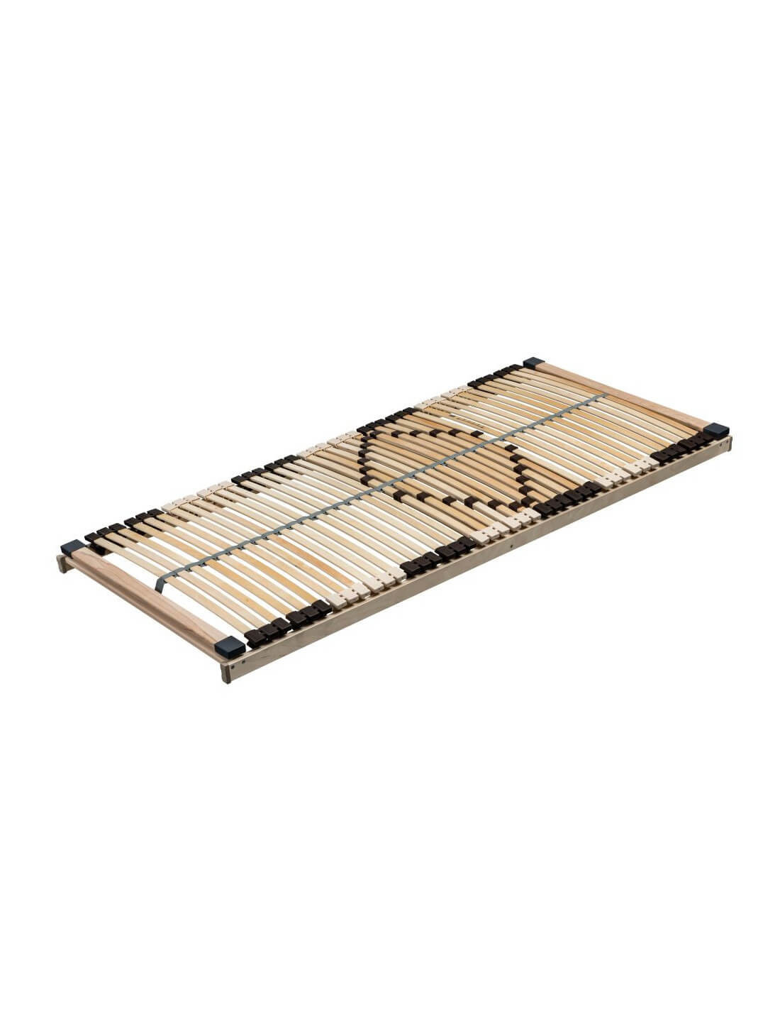 Vysoko kvalitný lamelový rošt do postele TRIPLE NATUR T12 je tvorený 42 lamelami, ktoré zaisťujú dobrú vetrateľnosť, odvod vlhkosti a rovnomerné rozloženie váhy. 12 zdvojených lamiel s posuvnými opaskami umožňuje regulovať tuhosť a tým aj tlak vytváraný na matrac v bedrovej oblasti. Posúvaním opaskov je možné tvrdosť matraca buď zvýšiť alebo znížiť. Pružné lamely uložené v trojiciach v kaučukových púzdrach sú rozložené do 7 anatomických zón. Stredový spevňujúci textilný popruh zaisťuje pevnosť roštu a bráni prelomeniu lamely pri extrémnom bodovom zaťažení. Prídavná lišta na okrajoch roštu rovnomerne podopiera matrac aj na okrajoch pri nohách a v hornej časti matraca. Zamedzuje deformácii okrajov matraca a predlžuje jeho životnosť. Pevný posteľný rošt ponúka nosnosť až 130 kg.