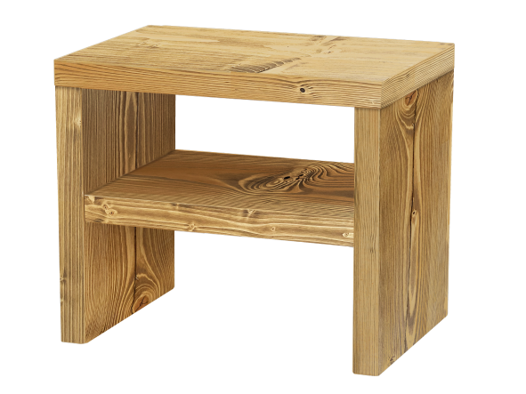 Nočný stolík TNS 1 z masívneho dreva v originálnom praktickom dizajne. Jednoduchý nočný stolík s policou.